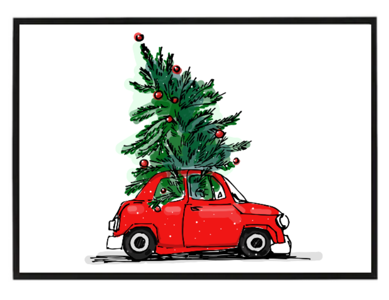 Červené auto se stromečkem